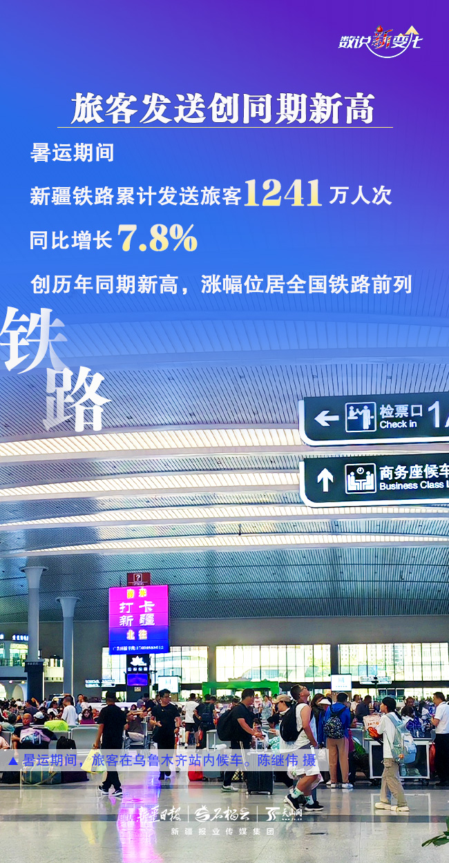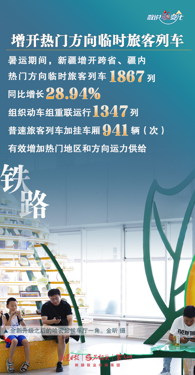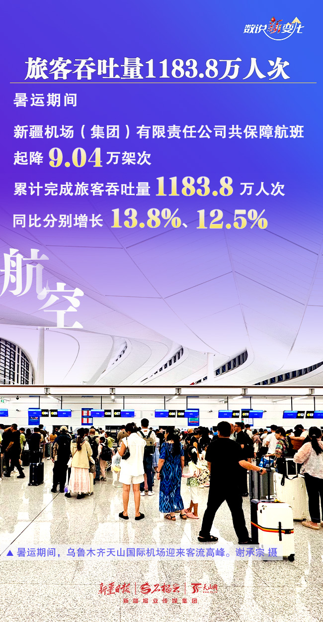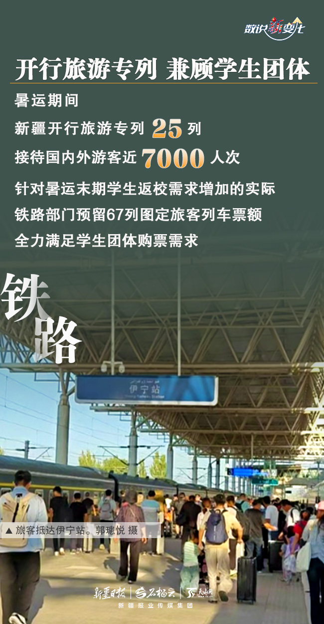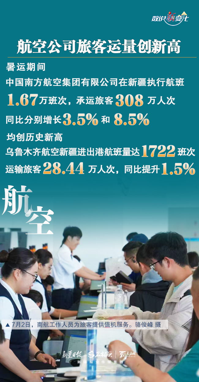 暑运以来,学生流、旅游流、探亲流等客流叠加,新疆进入旅游旺季。为更好满足各族旅客的出行,铁路、民航做了哪些工作?取得了怎样的成绩?今天的《数说“新”变化》一起来了解。